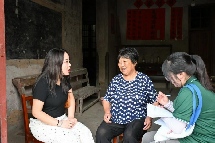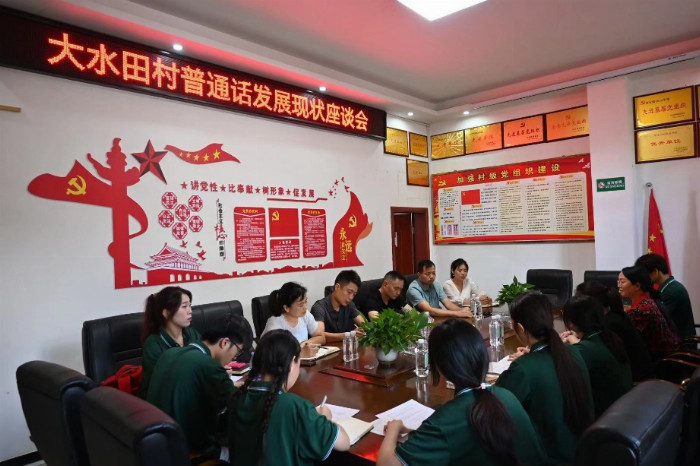 为进一步了解大水田村普通话使用现状,团队成员们走街串巷,通过发放调查问卷、采访居民等形式进行调查。此外,团队还邀请到常德市经开区工作队队长吴长春等人,举办了一场关于大水田村普通话发展现状的座谈会。经调查,团队成员发现大水田村村民存在普通话发音基础差、方言词汇混用等问题,但绝大多数村民都认可普通话在学习、工作和生活中的重要性,并表示愿意深入学习普通话,这不仅为推普工作提供了数据支持,同时也为推普助力乡村振兴注入了强劲动力。