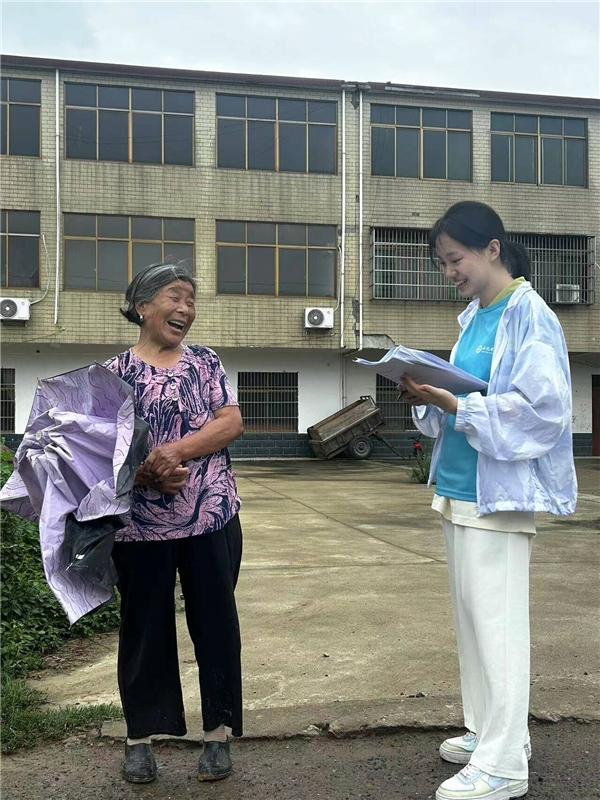 7月11日下午,实践团队乘车前往村内进行大调研,主要通过入户调研与问卷调查的方式进行,同时为村民进行党史的宣传教育和人居环境整治的普及。问卷主要提及党建、人居环境、农业生产几个方面。村民们态度热情,积极配合,同学们也迅速与村民打成一片。通过与村民们畅谈,同学们了解到他们的生活感受,也了解到村民眼中的吴寨村,知晓了近几年来村庄基础设施的建设和村庄环境治理对村民们生活环境的改善。同学们也听到了村民的心声,知晓了村民们的期望。这让同学们的实践活动有了额外的收获与意义。