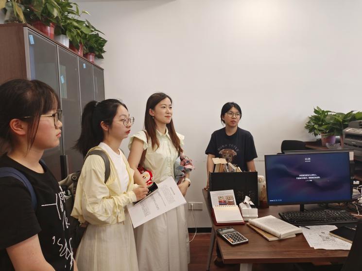 团队成员们首先来到嵊州市图书馆并采访了嵊州市文旅局局长。孙局长指出:“越剧在嵊州有着独一无二的文化地位,是一张非常有辨识度的金名片。嵊州文旅一直走在厚积薄发的路上。”在与孙局长的交流中,团队成员们深切地感受到了嵊州深厚的越剧文化底蕴以及其在旅游业发展中扮演的重要角色。采访结束后,实践团还在相关工作人员的带领下细致参观了图书馆,翻看越剧相关馆藏,查阅东王村史料,以史为鉴,拓展新思路。孙局长与相关工作人员都表示十分鼓励实践团站在年轻人的视角为越剧创新发展提供新方案、注入新血液。同时,团队走进“越剧艺术家的摇篮”——嵊州市越剧艺术学校,了解新时代越剧人才培养模式,考察民间剧团进东王的可行性。