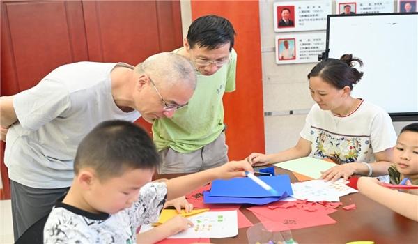 7月11日,实践团队走进了雨花社区,与这里被老人和孩子们亲切称为“刘老师”的社区工作者进行了深入的访谈与交流,共同探讨了改革开放以来老人与孩子们生活的显著变化,以及“老少同台”活动的深远意义。与此同时,雨花社区的活动室内,飞行器制造手工活动正如火如荼地进行着。大学生们巧妙地将科普知识与手工制作相结合,引导小朋友们在制作手工的过程中了解飞行器的基本构造。午后,大学生们为小朋友们准备了各式各样的空白风筝和丰富的绘画材料,鼓励他们发挥想象力,将自己对蓝天的向往、对梦想的追求绘制在风筝之上。小朋友们或低头专注描绘,或相互讨论灵感,一幅幅色彩斑斓、充满童趣的风筝图案在他们的笔下逐渐成形。