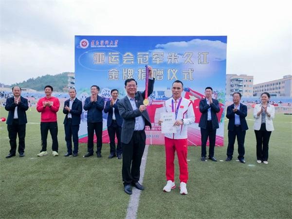 与此同时遵义医科大学优秀毕业生米久江正在巴黎参加奥运会山地自行车比赛,米久江也成为了亚洲唯一、中国唯一参加该项目男子越野赛的运动员。他从业余骑手到职业运动员,从零奖牌到全运会、亚运会“双料”冠军,米久江的职业生涯充满传奇。