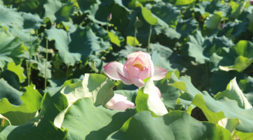 夏荷园里粉白色的荷花绽放 摄像:赖嘉琪