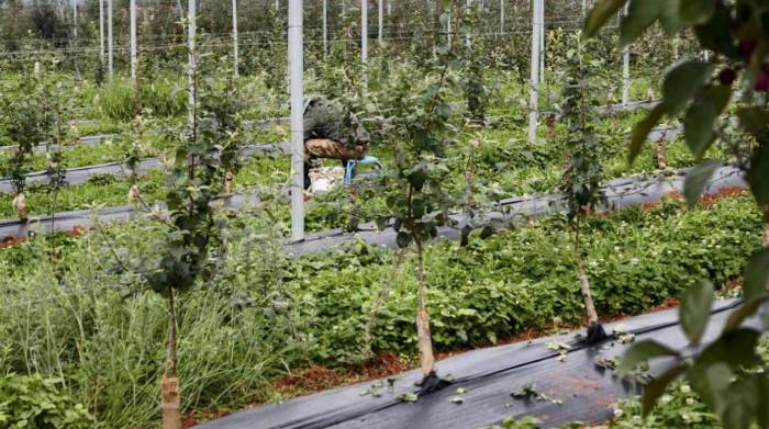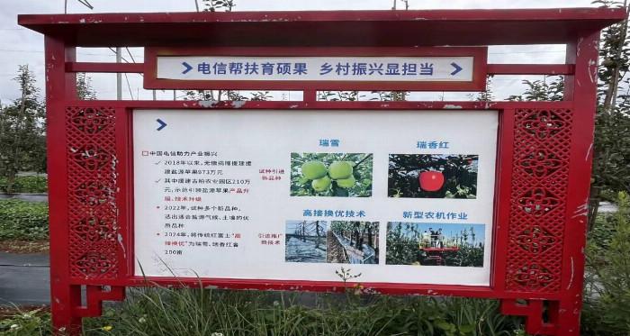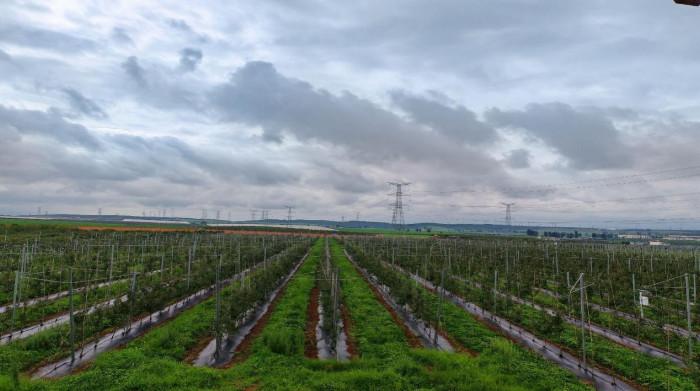 园区还配备了先进的格架系统,通过使用适当高度的格架系统,可以有效支持苹果树的正常生长,也能使果树在第二年或第三年就开始投产,提高产量;同时,由于果树被固定在格架上,修建、疏果、摘果就变得更为便捷,减少了人工成本;另外,它还有改善光照利用率、增强嫁接稳定性、整齐园貌的作用等等。