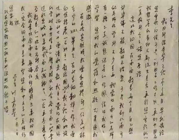 1979年10月2日,叶嘉莹先生致李霁野先生的信