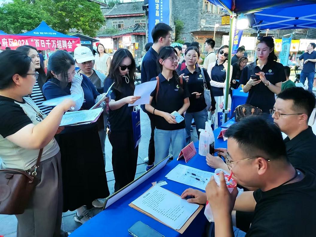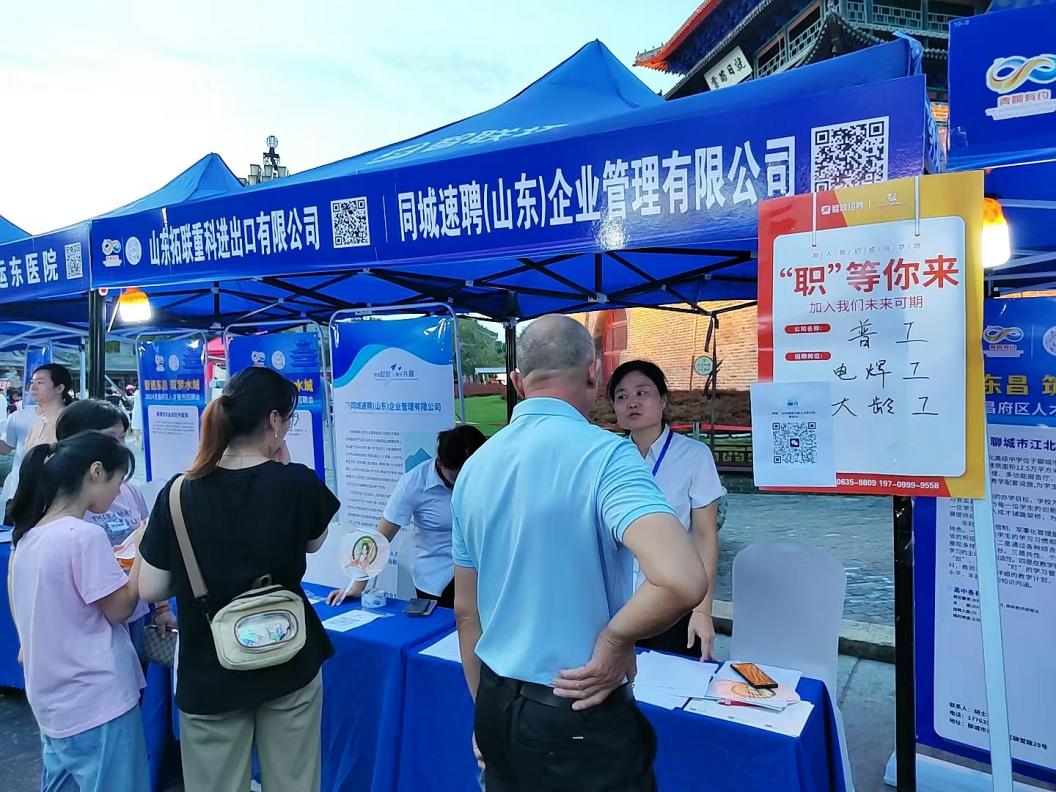 当晚,由东昌府区委组织部、区人社局、团区委主办,区工信局、区教体局、区卫健局、区文旅局、区综合行政执法局、区融媒体中心协办的聊城市东昌府区“青春消夏夜”主题活动暨2024聊城市东昌府区“智选东昌·筑梦水城”系列引才活动—人才夜市古城专场高校毕业生大型招聘会,在聊城古城区楼南大街北首举办。