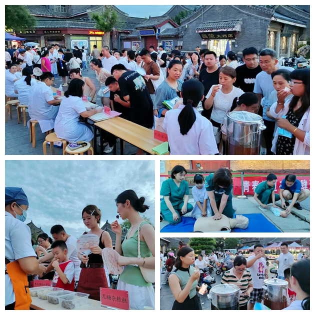 夜幕降临,华灯初上,东昌府区人民医院、区妇幼保健院开展的中医健康“养生局”活动吸引了广大市民前来咨询、体验。现场不仅有中医问诊、中医皮肤美容、急救知识科普,还有中药茶饮品和食药同源品鉴,青年朋友一边品尝医院自制的养生美食,一边喝着中药茶饮,在轻松愉快的氛围中感受中医药文化的魅力。