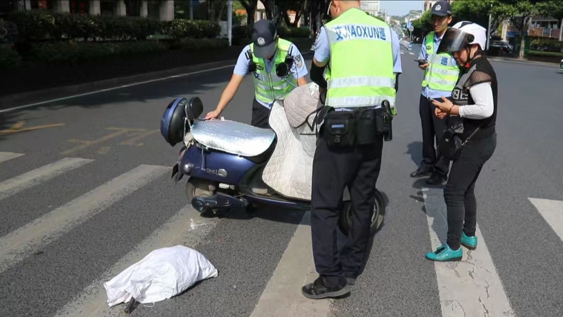 7月中旬,9时许,正值早高峰,铜梁区公安局交巡警支队民警辅警巡逻至铜梁区中兴东路时,发现一辆电动车倒在路中央,影响过往车辆通行,路边的一名女子显得十分无助。经了解,该女子的电动车被另一辆电动车碰倒,对方肇事逃逸,由于车身太重,该女子无法扶起,只好站在一旁等待帮助。民警辅警随即将电动车推到路边安全地带,及时消除交通安全隐患,并联系指挥中心调度事故处理民警赶到现场处置。