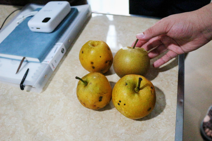 图为鱼池村生态梨与其他村庄梨对比图(李启蒙摄)