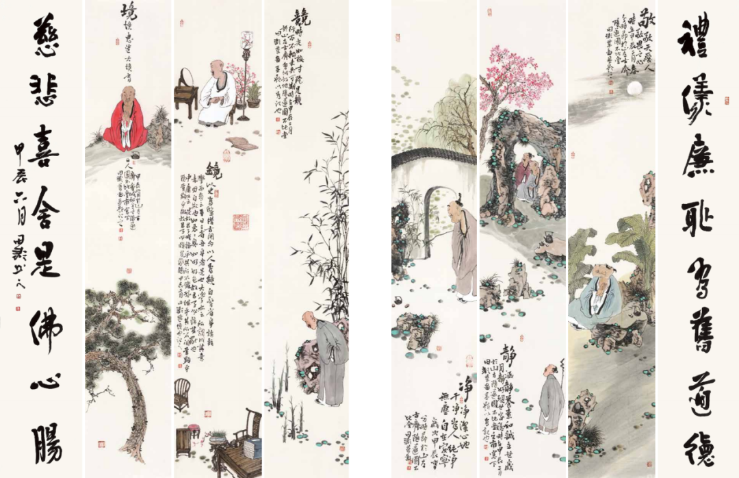 《敬 静 镜 竞 净 境——人生六境》 纸本设色 180cm×32cm×8