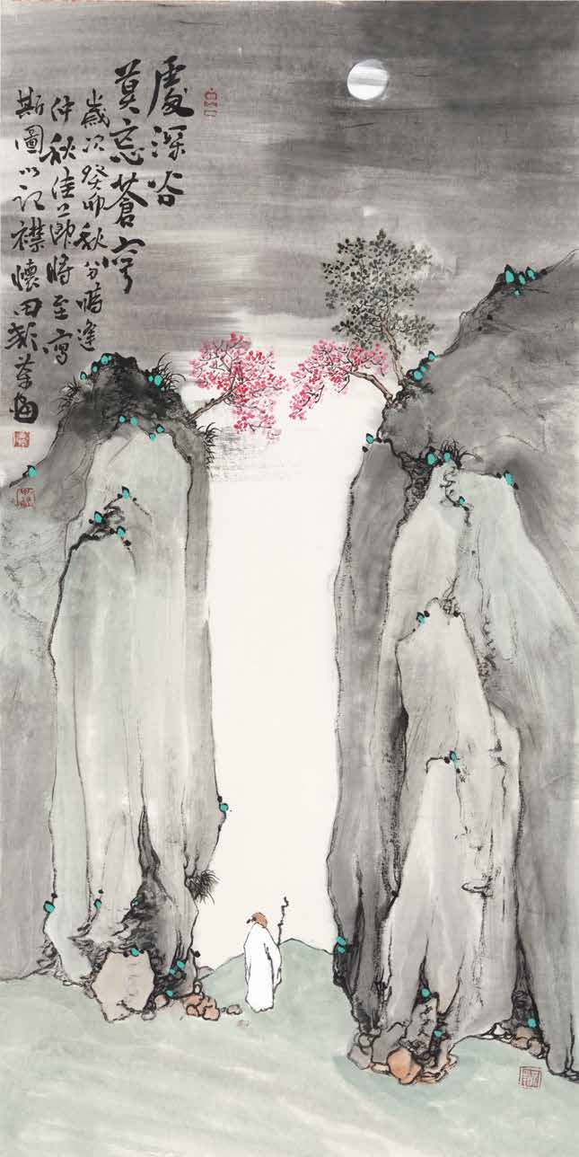 《处深谷 莫忘苍穹》纸本设色 100cm×50cm