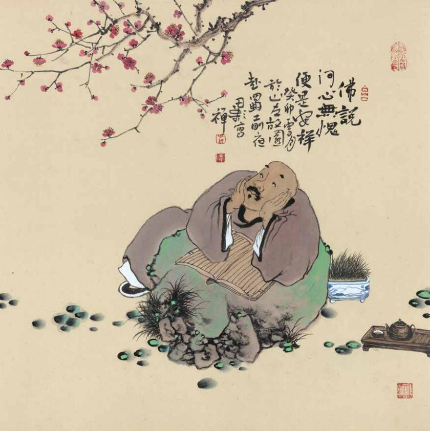 《佛说 问心无愧 便是安详》 纸本设色 66cm×70cm