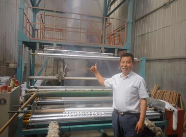 姚建民在工厂指导超薄型0.006㎜全生物降解渗水地膜生产
