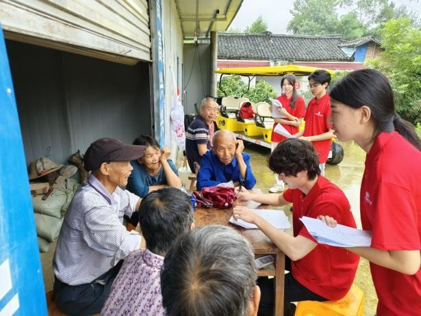 图为志愿团在东岳庙村与居民交流。淦涌 摄