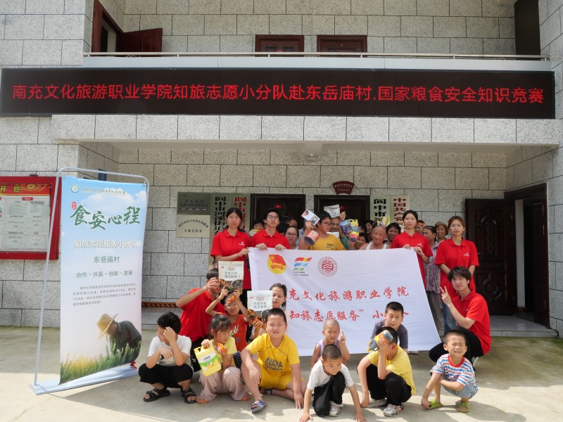 粮食事关国运民生,粮食安全是“国之大者”,与社会和谐、政治稳定、经济持续发展等息息相关。为深入学习贯彻党的二十大精神,7月9日,南充文化旅游职业学院旅游系“知旅志愿服务”小分队(以下简称“志愿团”)前往四川省南充市阆中市东岳庙村,通过实地调研、走访座谈等方式,开展为期7天的国家粮食安全宣传工作,旨在以青春之力,守护大国粮仓,从而为中国式现代化进程中粮食安全的保障添砖加瓦。
