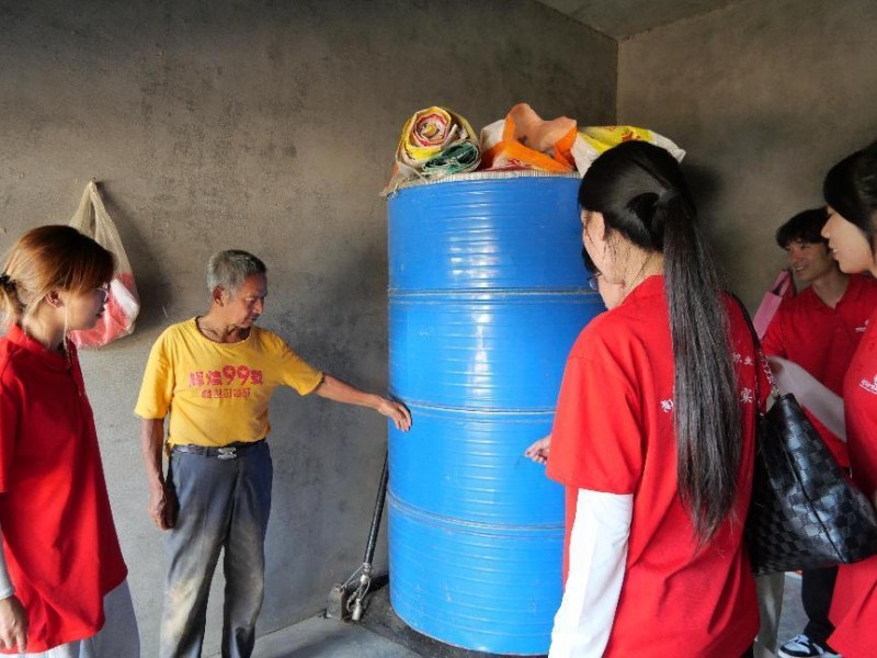 图为老党员罗自刚爷爷带领志愿团参观储存粮食的用具。淦涌 摄