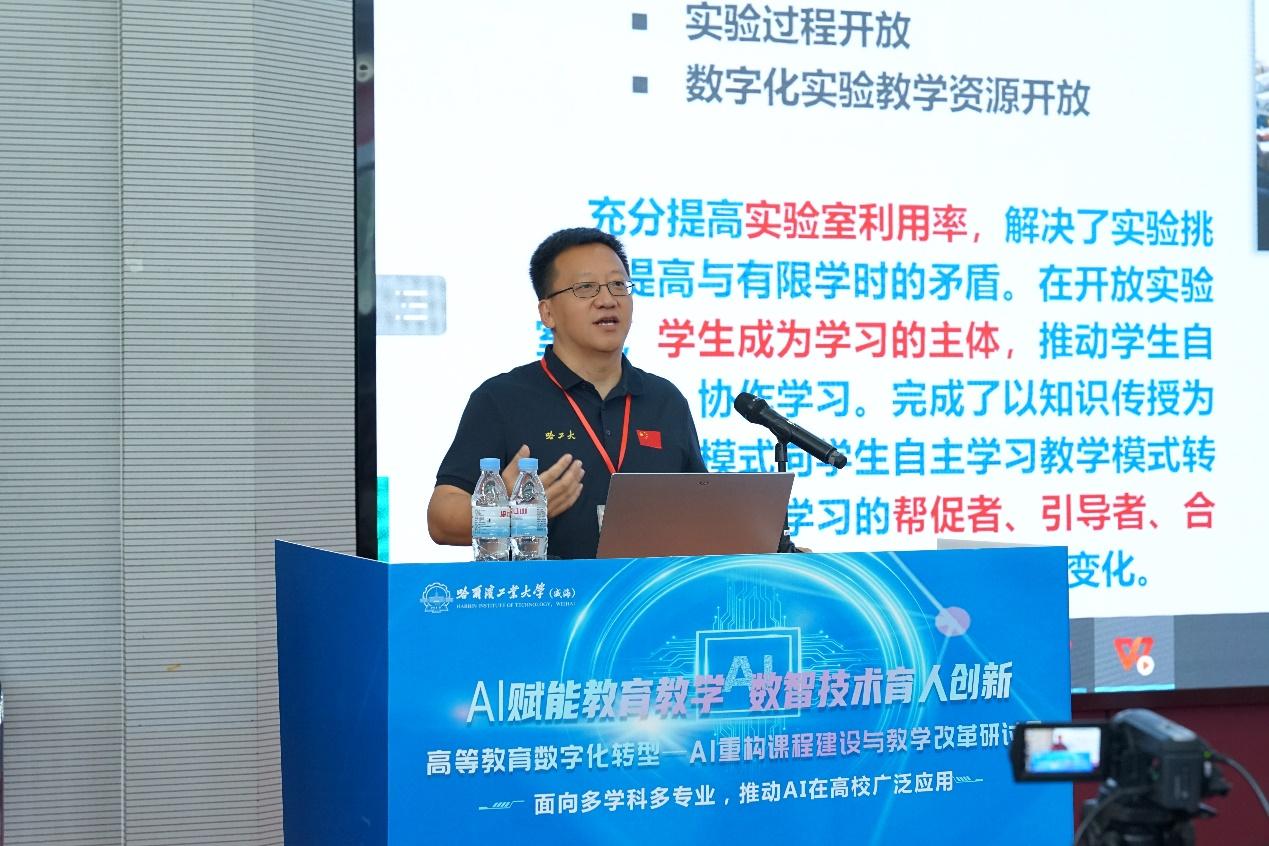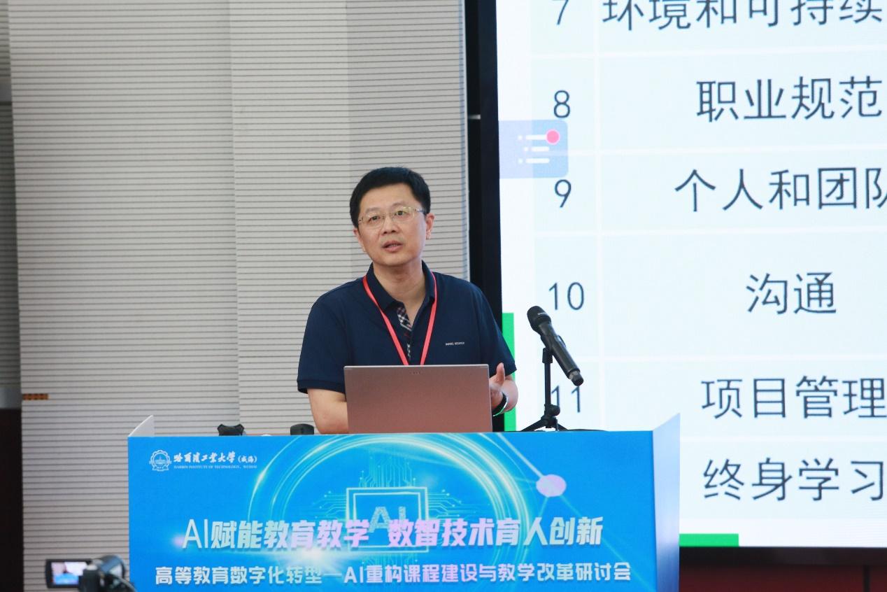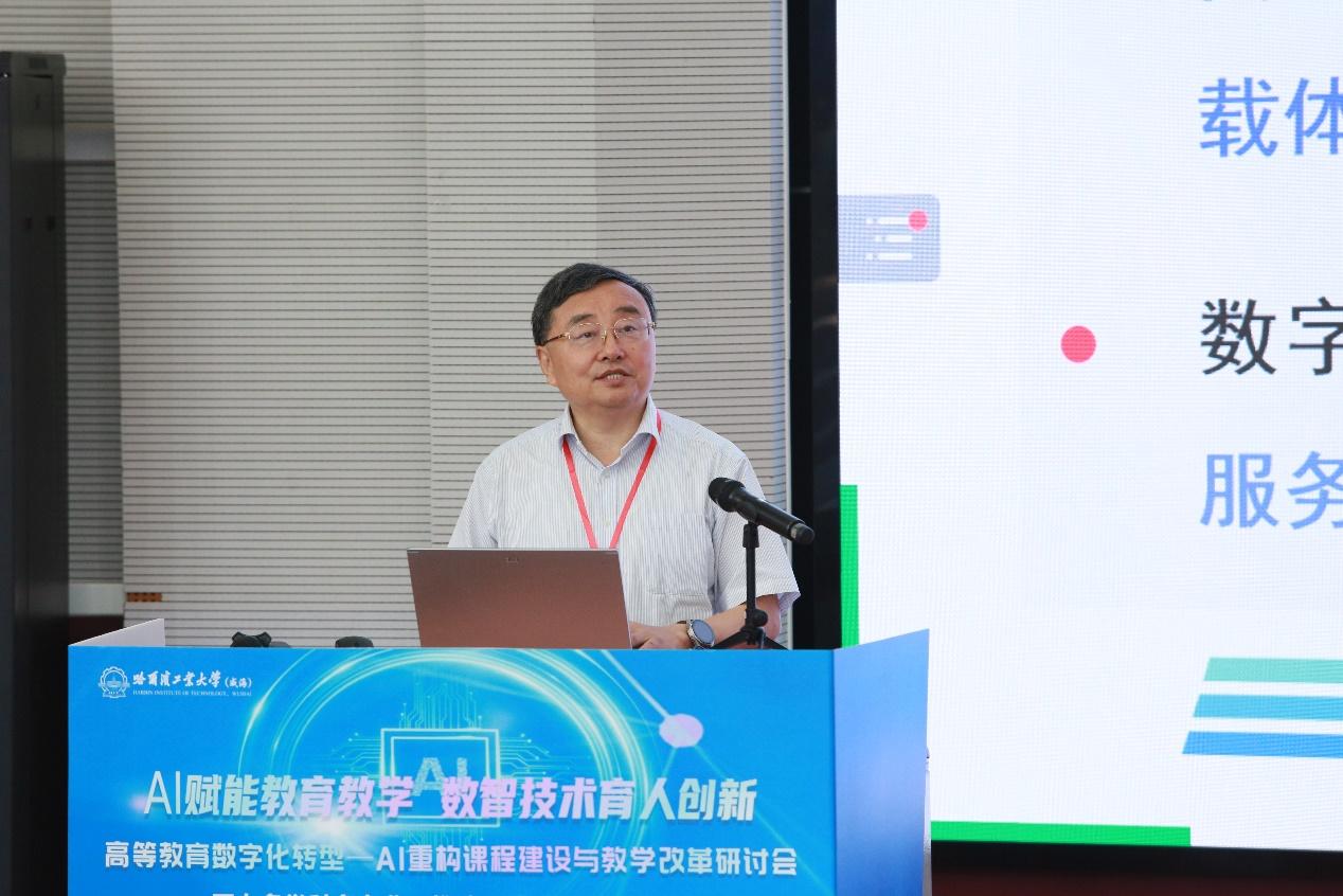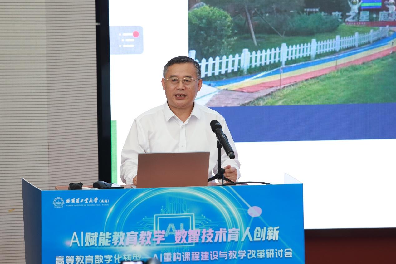 8月16-17日,由哈尔滨工业大学(威海)作为主任单位的中国高校计算机教育MOOC联盟山东省工作委员会、威海培训中心和信息技术新工科产学研联盟师资培训基地共同主办的“高等教育数字化转型—AI重构课程建设与教学改革研讨会”在山东威海举办,取得圆满成功。来自全国各地高校的领导、教务处与教师发展中心负责人、学科与专业负责人、院系教研室实验室负责人、众多一线教师、教务员老师们,以及AI教育公司和出版社负责人250余人参加了会议。国内著名AI教育领域专家莅临大会做专场报告分享。