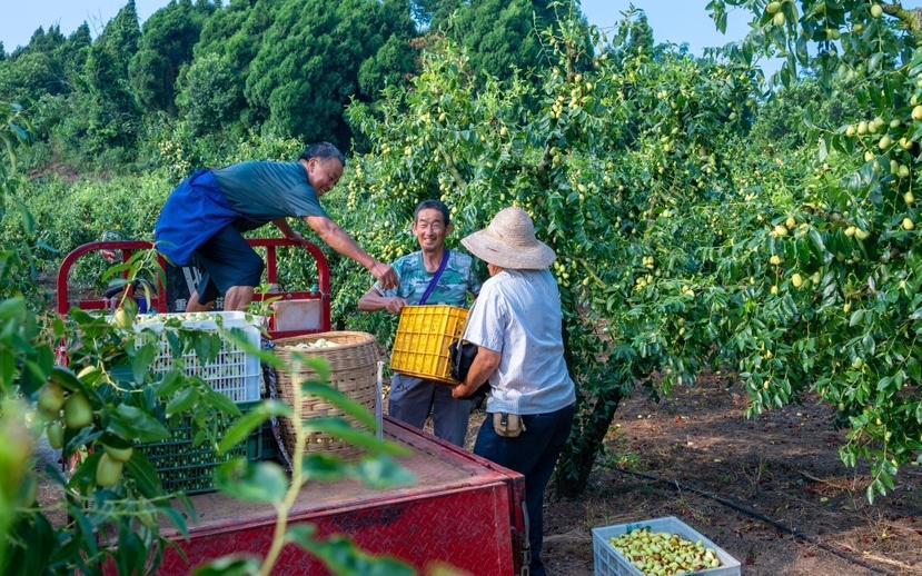 眼下,正是贵妃枣收获的季节。8月23日,参加“乡村振兴看罗江——全国主流媒体大型采风活动”的记者们走进德阳市罗江区白马关镇万佛村,浓郁的果香味扑面而来,圆润饱满的贵妃枣挂满藤蔓,村民们正忙着采摘、分拣、包装,呈现一片喜悦丰收的景象。