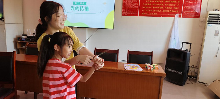 8月18日,在探索传统文化的同时,团队也为孩子们打开了物理世界的大门。志愿者通过激光、水果电池、空气炮等趣味实验,带领孩子们走进物理世界。光线在喷雾中展现的直线传播、水果电池点亮灯泡的惊喜、空气炮发射的欢笑,都让孩子们惊叹不已。此次课程不仅传授知识,更在孩子们心中种下了探索科学的种子,鼓励他们以科学的视角审视世界,勇敢追求未来的创新与发现。