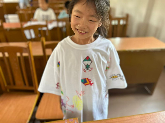 8月16日,团队将焦点放在民族图腾上,举办了一场充满特色的文化课程。图腾,作为民族身份与文化认同的璀璨符号,承载着深厚的民族情感与自豪感。通过互动游戏与深度讲解,孩子们不仅了解了黎族、苗族等民族的图腾故事,更亲手绘制,将心中的图腾跃然于衣上,创造出独一无二的民族风情。孩子们穿上自己设计的服饰,他们兴奋地表示:“第一次了解民族图腾,每个图案都有深意!”本次课程不仅激发了孩子们的艺术创造力,更深化了他们对民族文化的认同感与归属感。