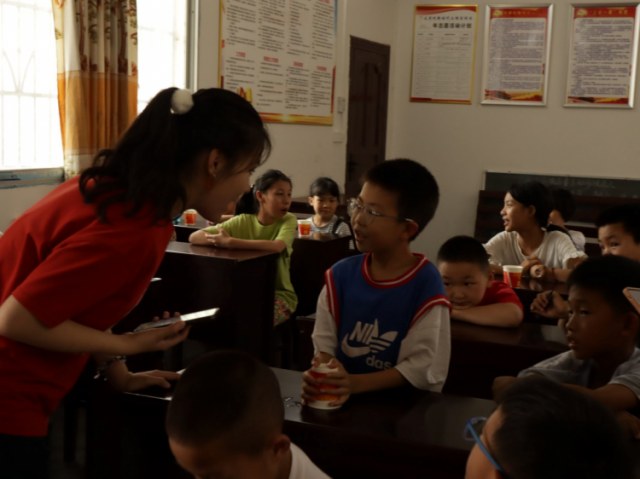 实践队员在课堂上引导学生回答问题。喻志和 摄