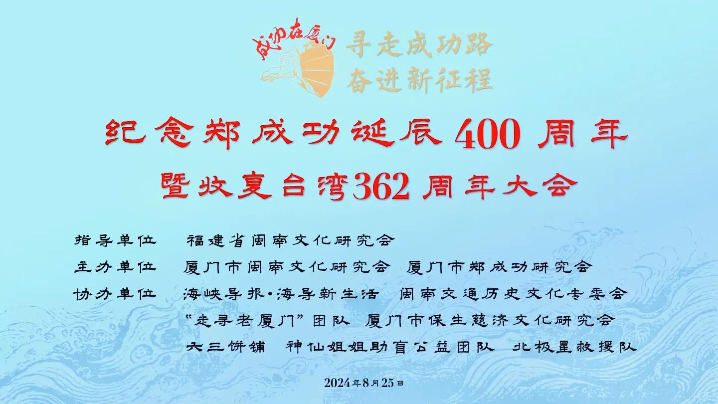 8月25日上午,“郑成功诞辰400周年暨收复台湾362周年”纪念大会在厦门市文化馆举行。纪念大会由福建省闽南文化研究会指导,厦门市闽南文化研究会、厦门市郑成功研究会共同主办。