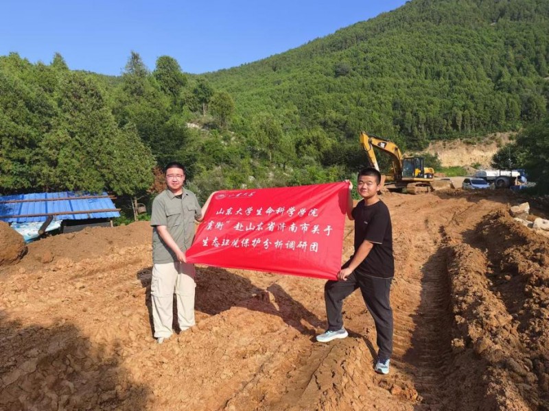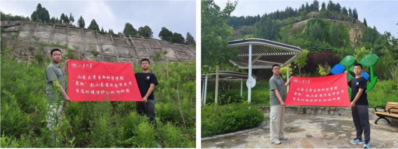 7月23日,小组成员在接收单位负责人的带领下对济南市洪山西坡北段破损山体治理工程进行实地调研。
