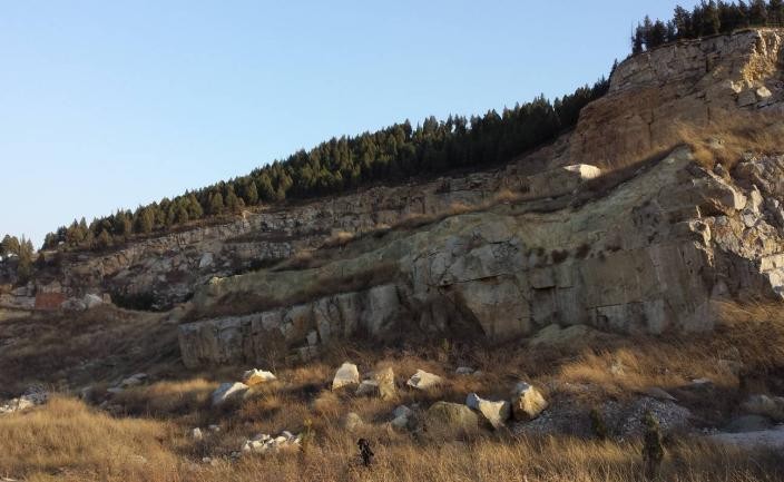 7月21日,小组成员在接收单位负责人的带领下对济南市高新区王八盖子山北侧石灰岩矿矿山复绿工程进行实地调研。