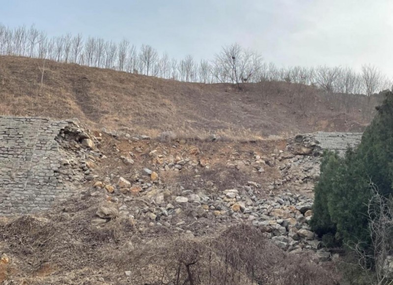 项目区为早期渣土堆填场,渣土下部建设有一道毛石挡土墙。经长期降雨冲刷,原有挡土墙逐渐遭受破坏。此外,项目区土地裸露,涵养水源能力有限,植被稀少,形成图斑,不仅影响附近区域的生态环境,同时也造成了严重的视觉污染。综上所述,治理区内主要存在挡土墙局部倒塌、高陡边坡裸露、坡面冲沟等地质环境问题,滑坡一旦整体发生滑移,将严重威胁倒塌挡土墙北侧居民的农田。