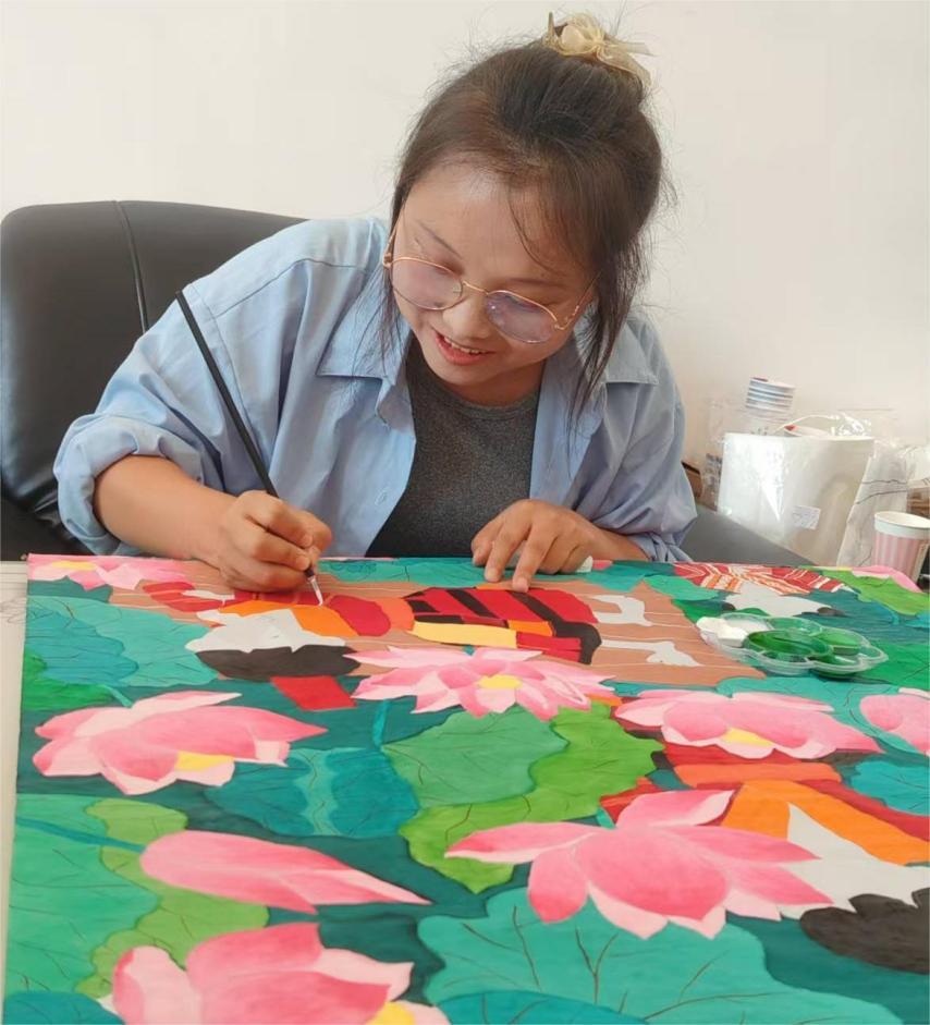 在很多人的印象中,农民画的创作者大都是年纪不小、有一定生活阅历的人。其实不然,项秋艳年仅25岁,个小白净的她,看上去还像一个“孩子”,也是2021年才涉足的农民画。