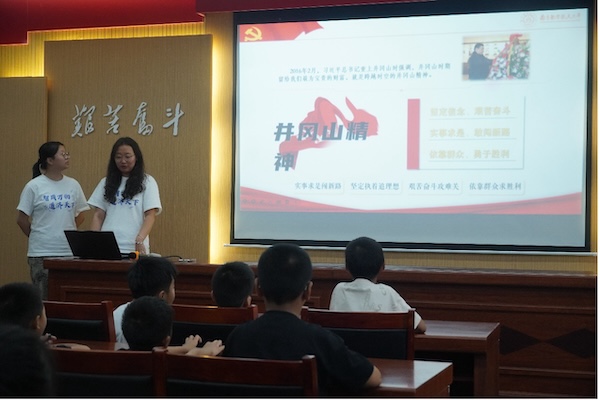 2024年8月25日下午,南航学子来到井冈山罗浮小学进行调研,向十五名学生讲授以“重上井冈山,再走会师路”为主题的团课,并在课后对老师进行采访。主题团课中,团队成员图文并茂地展现了井冈山的革命地位。从大革命失败开始,沿着时间脉络引导学生们学习井冈山革命根据地的历史背景,再通过剖析“牺牲带”、“一根灯芯”等文物故事,重现井冈山精神的内涵。来自革命圣地的学生们,秉持优良传统,在课堂上纪律严明,积极参与,将自身红色血脉融入学习生活。团课结尾,我们带领孩子们学唱红色歌谣,感受红色印记。学生们虽然唱功稚嫩,但都积极配合,整个团课氛围在婉转的童声演唱中迎来高潮。课后,实践团队就数字化赋能井冈山红色基因传承现实挑战与发展方向,暨过去、当下、未来三个方面跟老师进行探讨。老师表示,传承红色文化,在过去,主要通过改编历史,将枯燥的文字转换为学生们喜闻乐见的故事或是富有娱乐性的活动,在听与做的协调进行中体会历史意义。而且现在随着互联网的普及,还可以通过借鉴一些大众筛选的“潮流”方式,衍生红色活动,让学生参与其中。老师的看法启发了团队成员的思考,独到专业的角度引起了众人的共鸣。数字化建设不仅为公众提供了一个全新的学习和体验平台,也为红色文化的传承与创新探索了新路径。通过数字化赋能,井冈山精神得以在新时代焕发出更加璀璨的光芒,激励着每一位中华儿女为实现中华民族伟大复兴的中国梦而不懈奋斗。