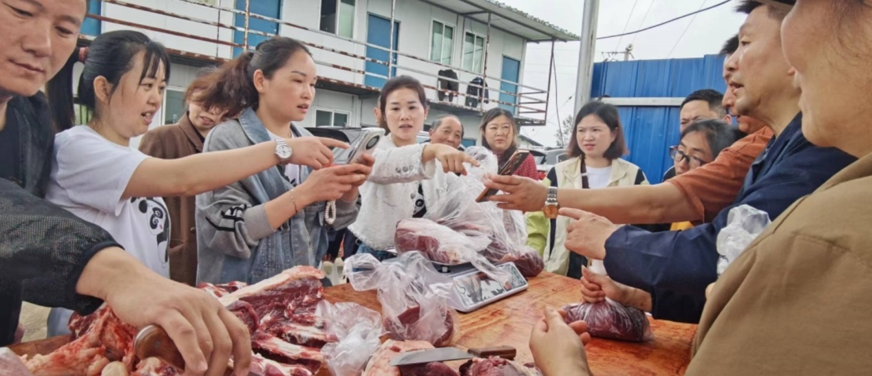 此外,驻村工作队助力团结村注册肉牛品牌“团结·景牛”,设计具有辨识度的品牌LOGO,制作肉牛宣传电子彩页,多平台发布品牌推广宣传视频,不断提升肉牛品牌的知晓率、美誉度;逐步打通肉牛饲养到屠宰、分割、鲜牛肉运输、保鲜贮藏、销售等各环节,通过举办特色全牛宴8场,累计屠宰肉牛30余头,销售鲜牛肉16000余斤,销售额突破70万元,逐步形成产销一体化经营模式,为打造团结牛市奠定了坚实的基础。