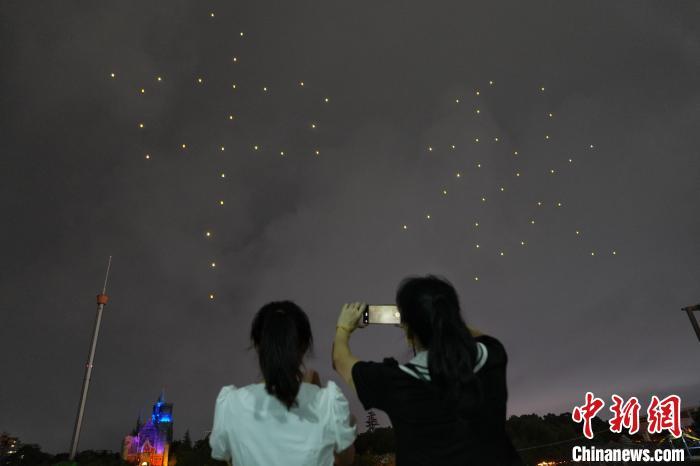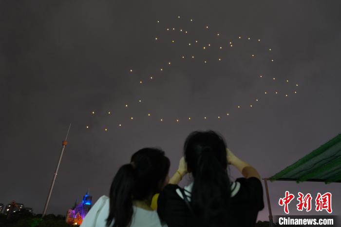 图为工人家属拍摄无人机组成的中秋汉字。中新社记者 杨华峰 摄