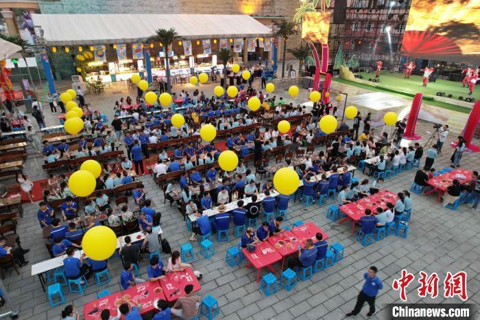 图为百人同席感受中秋合拢宴。(无人机照片)中新社记者 杨华峰 摄
