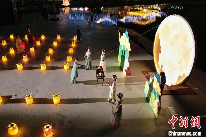 9月12日,环卫工、护士、建筑工人等长沙基层劳动者代表来到长沙世界之窗参加了一场传统的中秋合拢宴,并观赏传承千年的祭月礼,迎接即将到来的中秋佳节。图为工作人员行祭月礼。中新社记者 杨华峰 摄