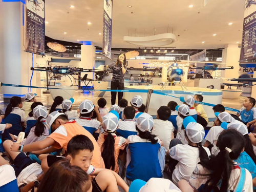 研学第二站——翼空智控。在这里,孩子们近距离观察了无人机的构造,部分同学还参与了室内模型游戏机操控飞行体验,在亲身体验中感受到了科技的魅力,感悟学习的重要性和必要性。企业的工程师还向学生们展示和介绍了无人机在农业、环保、救援等领域的广泛应用,孩子们欢欣雀跃,意犹未尽,对无人机技术产生了浓厚的兴趣,纷纷表示长大后也想当一名科学家,为祖国的科技发展尽自己的一份力。