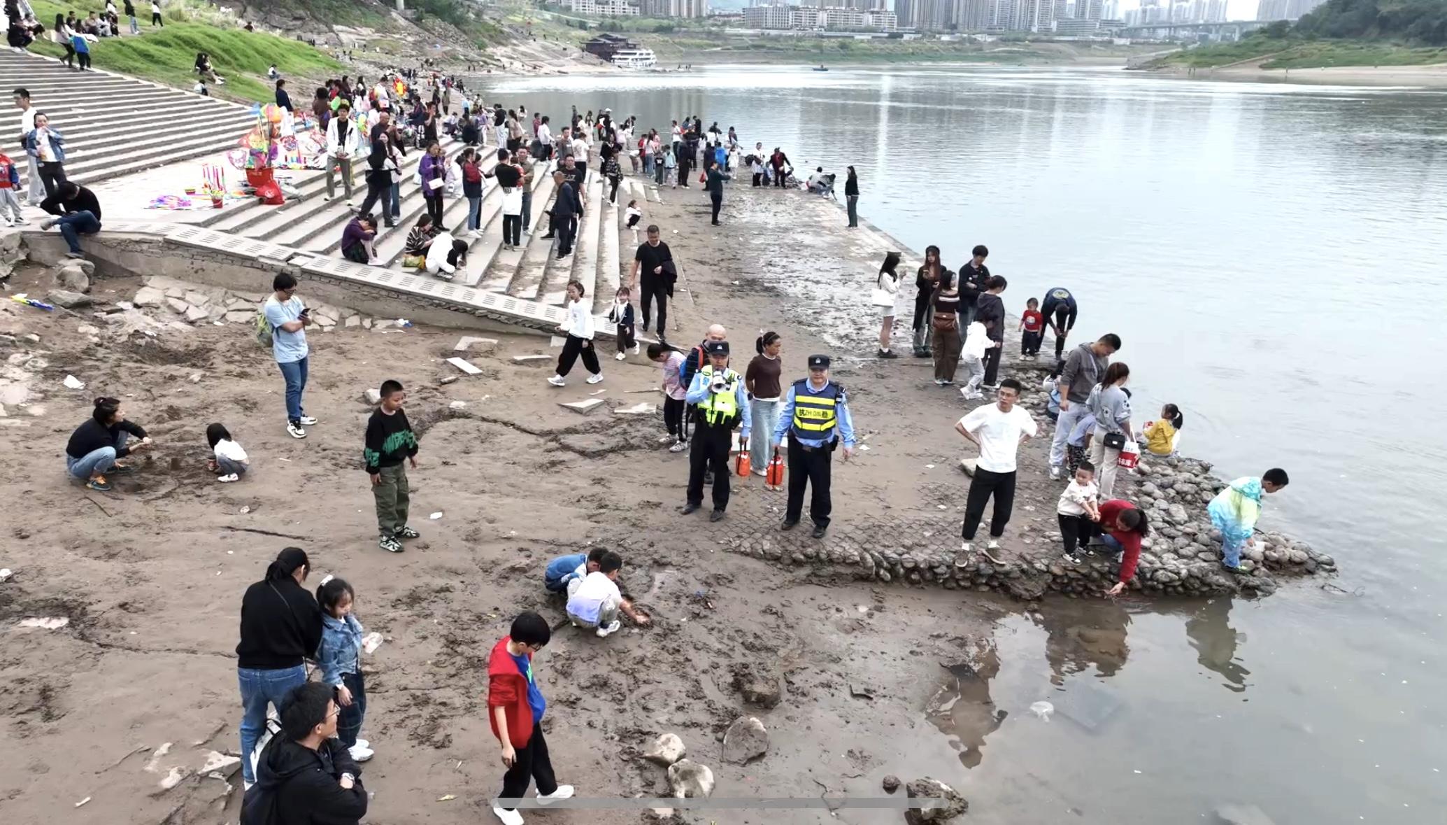 “过年过节出门在外,大家高高兴兴来玩,互相理解一下……”经过民警现场调解,双方握手言和。“就是游客和摄影师为了拍照取景点位发生纠纷,确实江边都是乱石,走起来都是深一脚浅一脚的。”民警继续沿着江滩开展巡逻。