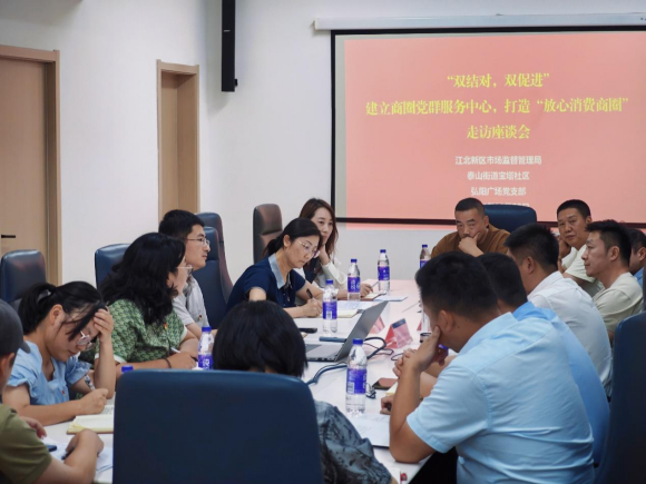 今年8月,江北新区市场监管局副局长曹建军带队走访调研宝塔社区,与社区“两委”班子开展座谈,深入了解社区党建引领为民服务、商圈治理等工作。据介绍,宝塔社区辖区内有多家商业综合体,是江北新区商业聚集程度较高的片区,客流量大,客群黏度较高,承载着居民对“放心消费、美好生活”的追求。在交流过程中,双方计划通过开展惠企政策宣传和普法宣传、开展消费教育和消费纠纷处理培训、推进放心消费和规范明码标价等活动,促进商圈各业态健康发展,打造“放心消费商圈”。
