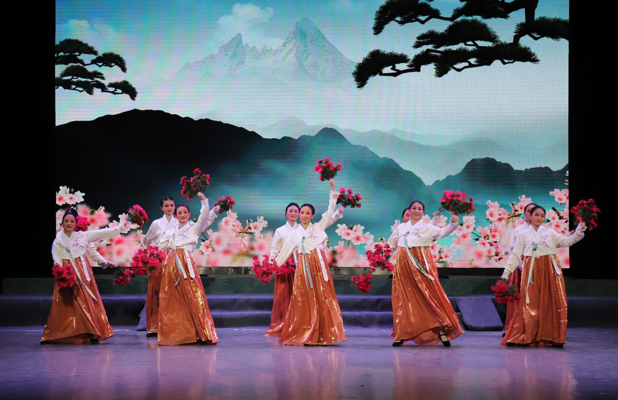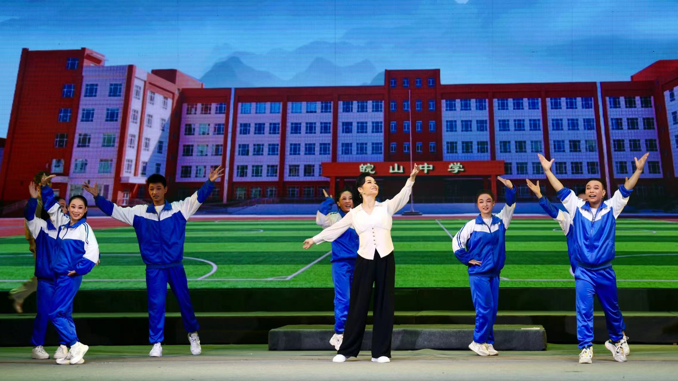 讴歌民族团结,赓续皖山情缘。由望江县黄梅戏艺术传播有限公司倾力打造的大型现代黄梅戏《皖山情》,于10月7日在第十届中国(安庆)黄梅戏艺术节压轴亮相。夜幕降临,华灯初上,安庆石化俱乐部《皖山情》演出现场在优美的旋律中,帷幕渐渐拉开,场内陡然鸦雀无声,观众被舞台上一群青春靓丽的演员手捧簇簇杜鹃花载歌载舞而吸引,随着剧中主人翁出场,观众也渐渐沉浸在起伏跌宕的剧情中。演出中观众为演员的精彩演唱,细腻表演而感动,不时爆发雷鸣般掌声。演出结束,曲终人未散,纷纷拥向台口拿起相机手机拍照,戏迷、粉丝络绎不绝地上台献花、拉横幅以示祝贺,来自方方面面的领导、专家、主创人员上台与演员合影留念,瞬间场内成了一片欢乐的海洋。