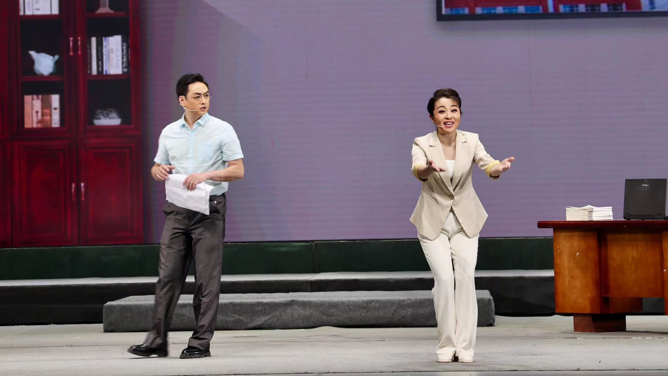 数月来,望江县黄梅戏艺术传播有限公司在县委、县政府及文化主管部门的各级领导的重视、支持下,举全团之力,秣马厉兵,冒酷暑,战高温,选择优势兵力,组建本土主创团队,集中最佳阵容,备战“十艺节”。尤为突出的是老中青三结合的《皖山情》主创团队为该剧不分夜昼几易其稿,不厌其烦,认真排练,精心打磨。著名剧作家谢樵森先生年逾八旬,笔耕不辍,老骥伏枥,他说:创作意图,主要是表现“人情美”,民族情、战友情、同事情、师生情、夫妻情、婆媳情,没有刻意去表现矛盾对立面,全剧都是好人,也是本剧一大特色。导演宋纪刚与副导演、舞蹈编排姚红,精心设计舞蹈画面为舞台呈现增添了亮点,作曲虞哲华已年过古稀与青年才俊何春旺老少同堂,精诚合作,为该剧音乐、唱腔反复商讨、揣摩,做了一些大胆尝试,采用少数民族的音乐原素与传统黄梅戏融为一体,达到了较好的音乐效果。其它灯光、舞美等设计人员竭尽全力,密切配合,为黄梅戏的弘扬光大和赓续传承,不负众望,不负桑梓。公司总经理陈立要求,每一个演员,每一个部门对剧本要读懂读透,对每一句台词,每一节音符,每一个舞台调度节点,都要做到一丝不苟,丝丝入扣,争取在“十艺节”上以最好状态完美展现给“有戏之城”安庆的广大观众。