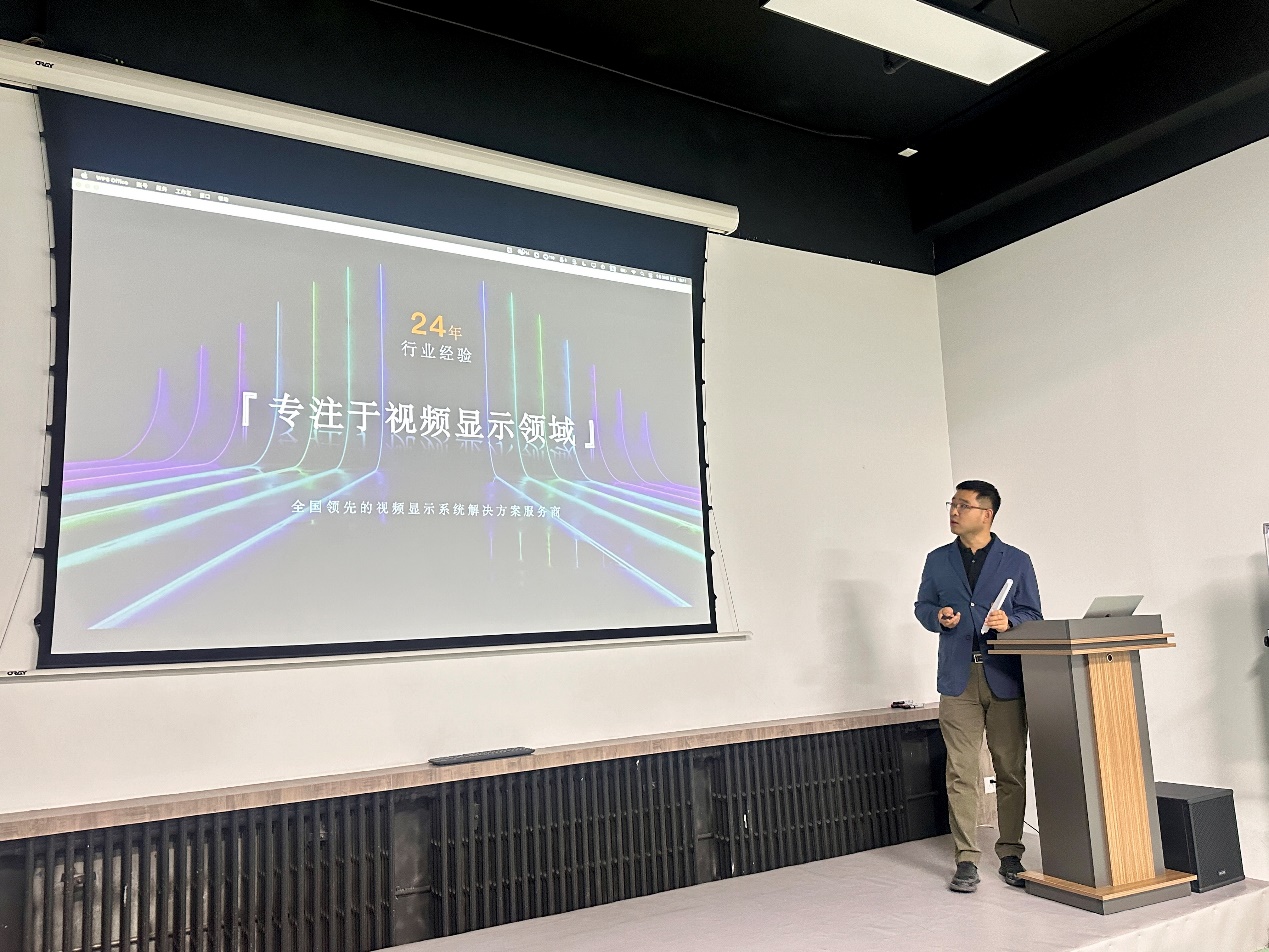 随后,赵庆伟总经理代表安恒集团致辞。他详细介绍了安恒集团在视频显示系统解决方案领域的专业实力与丰富经验。自2000年成立至今,一直秉承“科技为先,服务为本”的理念,目前安恒旗下拥有4家分公司,全国27家办事处。赵总表示,安恒集团将全力支持专委会北京创研基地的建设与发展,为沉浸式文旅项目提供坚实的技术支持与服务保障。