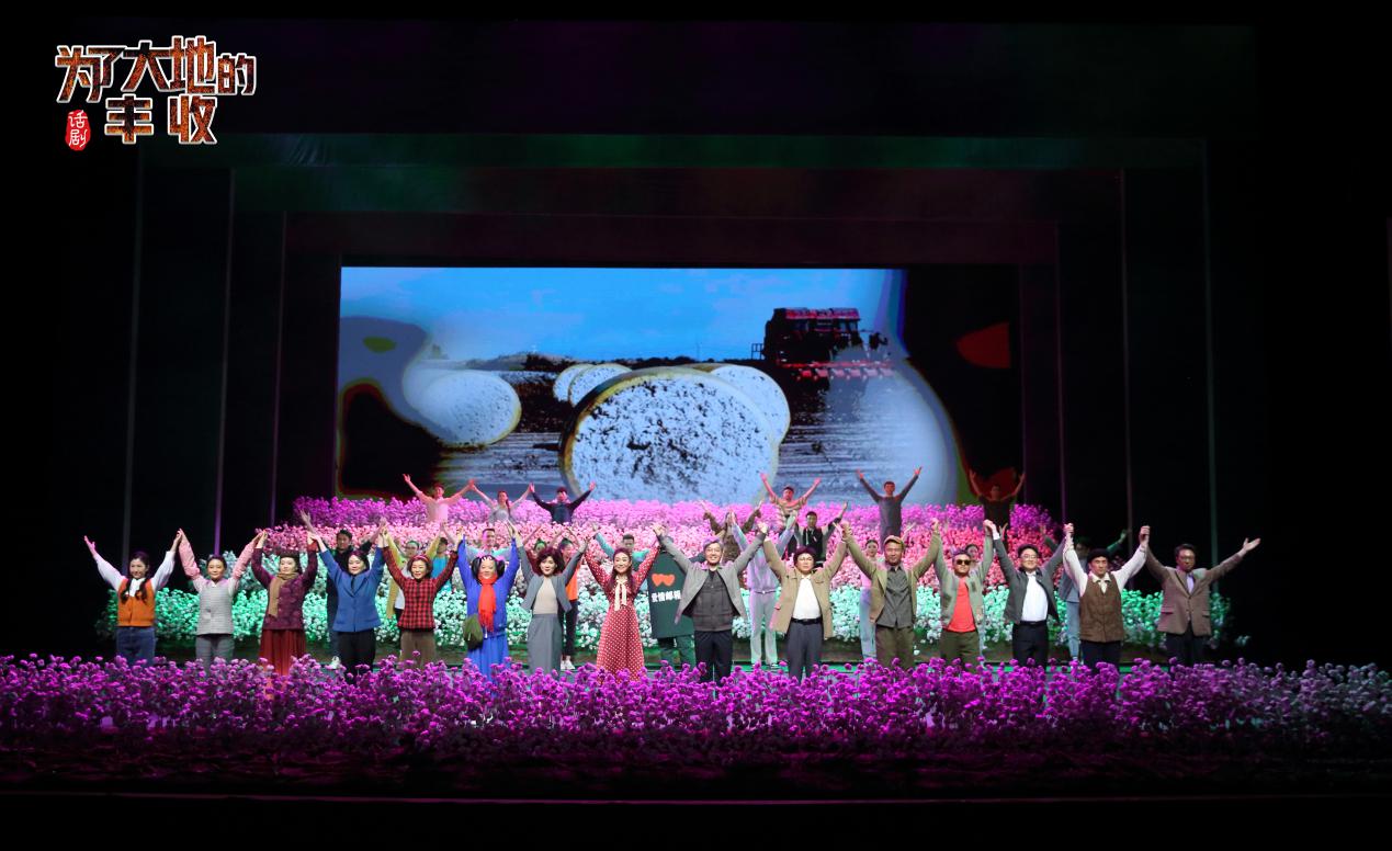 由新疆生产建设兵团歌舞剧团创排的现代话剧《为了大地的丰收》,作为由中共中央宣传部、文化和旅游部、中国文学艺术界联合会共同举办的“与时代同行 与人民同心”——新时代优秀舞台艺术作品展演入选剧目,10月12日至13日晚在中国国家话剧院精彩上演。