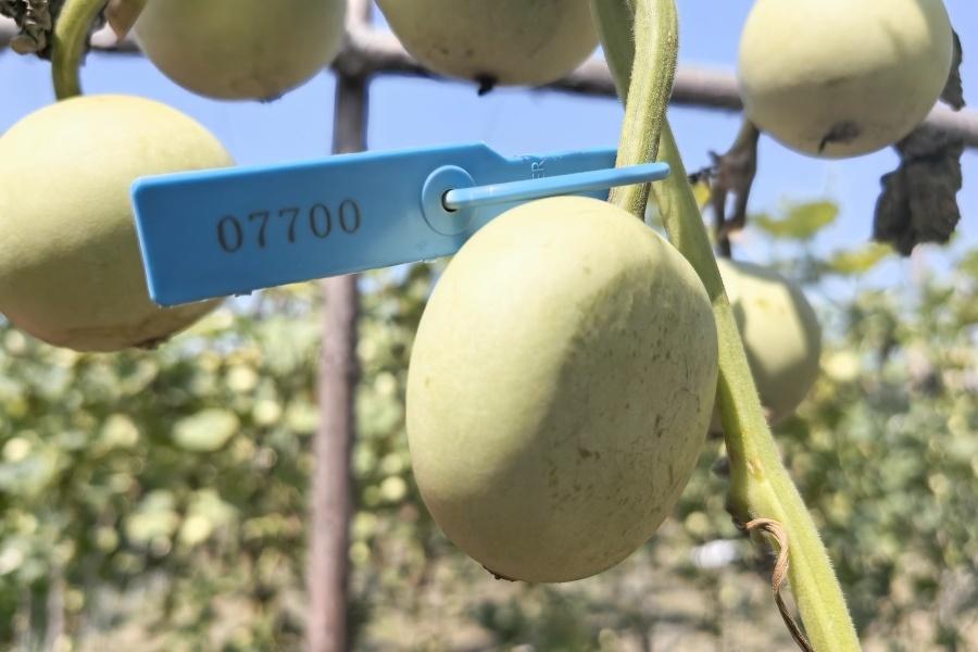 在堂邑镇教场李村村民金英家的葫芦田里,一些还长在藤上的葫芦上方,绑着蓝色或黄色的标志。“这些葫芦都是被客商早早订下的,他们看中哪个,就会在哪个上边绑上自己的标签。”金英说,如今的葫芦不愁卖,只要管理到位,保证葫芦长势良好,就能卖个好价钱、有个好收成。
