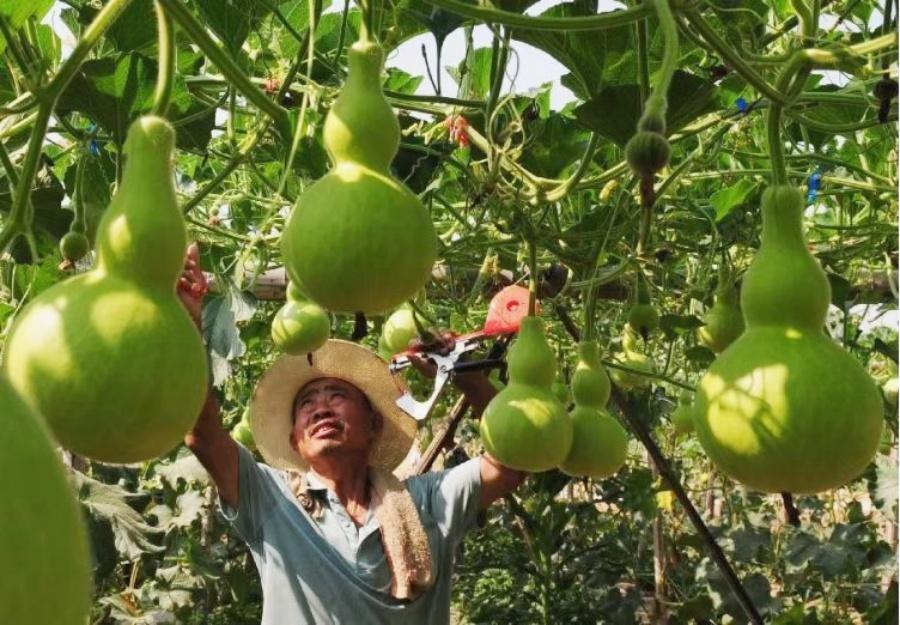 葫芦,与“福禄”谐音,自古就有吉祥的寓意,深受人们喜爱。路庄新村党委书记王士滨说,最近几年,来村里挑“尖货”的客商一年比一年多,每到葫芦收获季节,大街上就停满了来自全国各地的车。