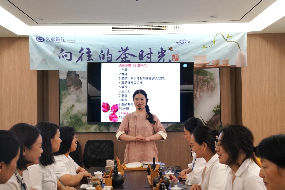 为了让大家感受中国源远流长的茶文化,了解中国传统礼仪,兴业银行台州分行工会开设了“向往的茶时光”茶艺课程,邀请了国家一级茶艺技师包琳春老师带员工们了解茶文化,让“茶”的故事,从这里开始......