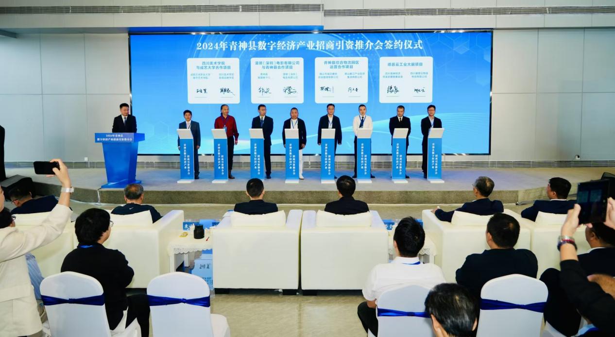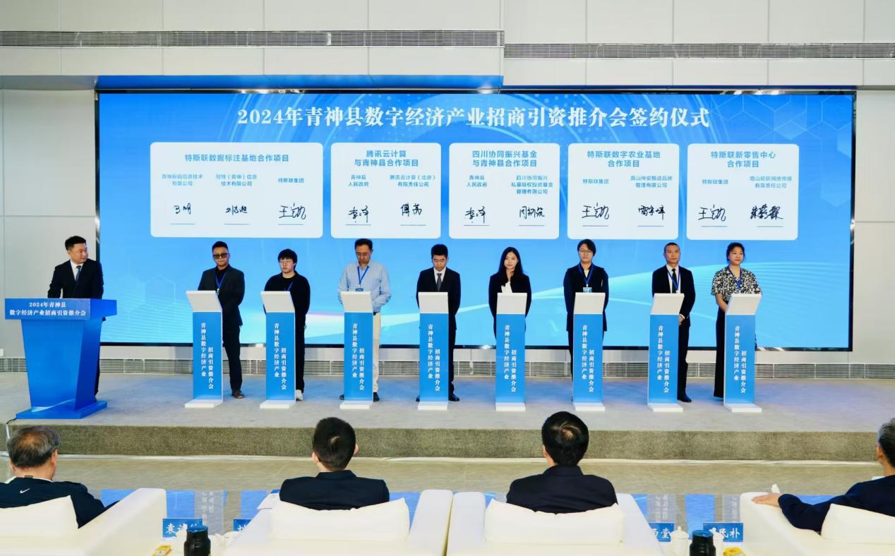 签约仪式将推介会推向了高潮。两轮签约共涉及9个项目,包括腾讯云计算与青神县合作项目、四川协同振兴基金与青神县合作项目、特斯联数据标注基地合作项目、特斯联数字农业基地合作项目、特斯联新零售中心合作项目、漫恩(深圳)电影有限公司与青神县合作项目、青神县综合物流园区运营合作项目、四川美术学院与成艺大学合作项目、德恩云工业大脑项目。