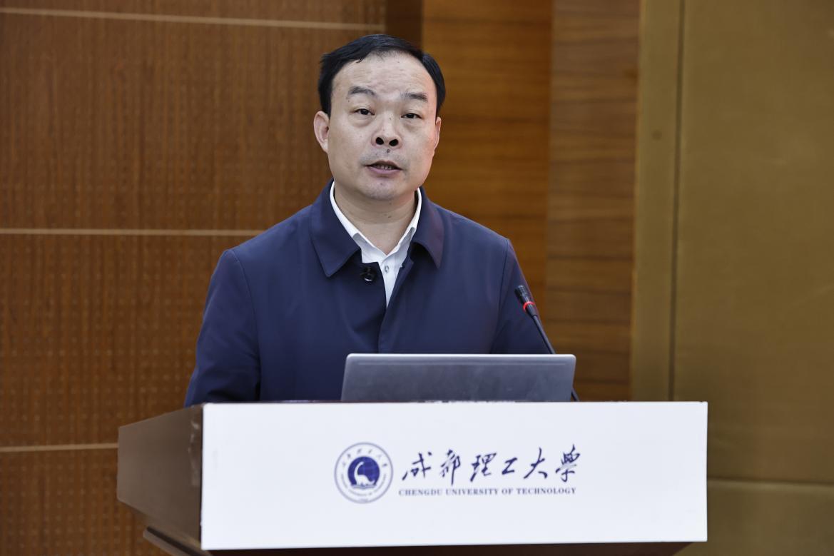 四川省教育厅宣传思想与统战工作处副处长刘海峰在讲话中对教学研讨会的成功举办表示热烈的祝贺。他指出,长期以来,成都理工大学围绕“大思政课”建设,依托校内丰富的场馆资源,充分发挥场馆育人功能,倾力打造“场馆里的思政课”,产生了良好的育人效果和社会影响。本次研讨会的举办,为全面推进“场馆里的思政课”建设搭建了平台、丰富了载体、凝聚了智慧,将有力推动高校思想政治理论课教学改革创新。他希望成都理工大学以全面推进全省特色马克思主义学院建设为契机,持续打造具有鲜明成理特色的场馆育人模式和育人品牌,产出一批高质量成果,为推进大中小学思政课一体化建设和全面推进“大思政课”建设贡献四川高校力量。