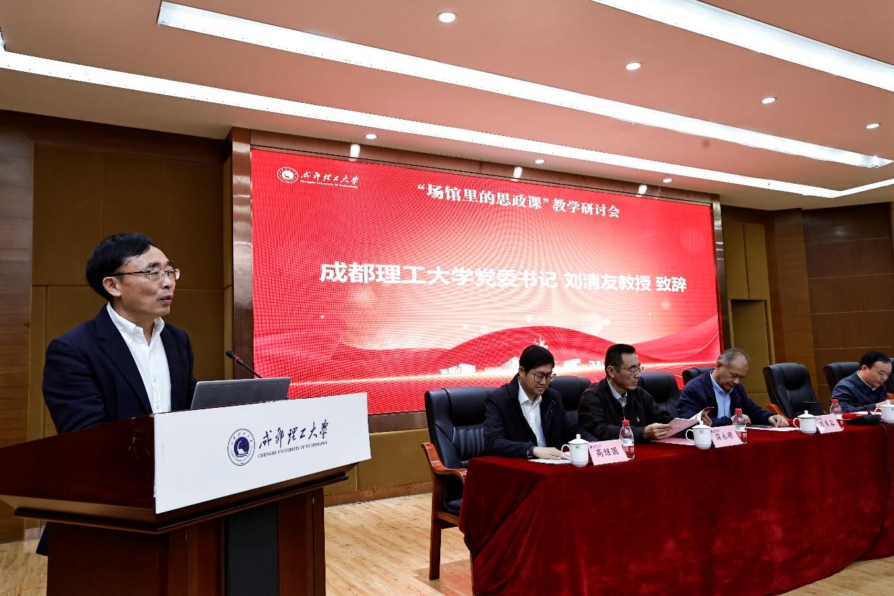 开幕式上,成都理工大学党委书记刘清友教授致欢迎辞,对各位专家学者的到来表示热烈欢迎,并向与会人员介绍了成都理工大学和马克思主义学院的建设发展情况。他强调,成都理工大学历来高度重视思政课建设,积极推动思政课改革创新。近年来,学校创新拓展思政课教学实践场域,依托“四馆二室一院三基地”,深入挖掘育人资源,建强“场馆育人”队伍,聚力打造“场馆里的思政课”,形成了具有鲜明成理特色的场馆育人模式。他表示,举办“场馆里的思政课”教学研讨会,希望通过与会专家的交流,进一步探索新时代场馆育人的新理念、新思路、新方法,以“场馆里的思政课”赋能“思政课”高质量建设,让学生真正学有所得、学有所获、学有所长。