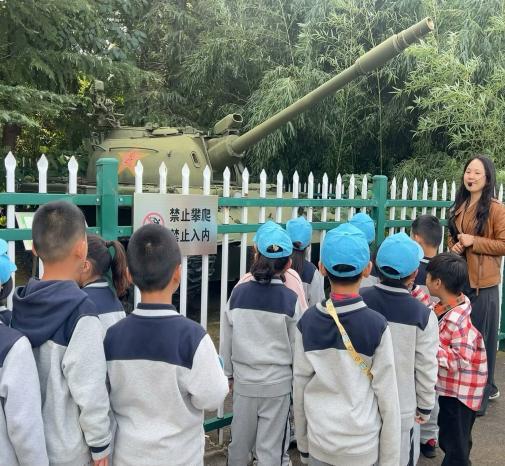 走进国防园,庄严的氛围扑面而来。各种退役的武器装备整齐排列,它们曾经在战场上叱咤风云,如今静静地诉说着历史的沧桑。一架架雄伟的战机、一辆辆威武的坦克映入眼帘。跟随讲解员的脚步,他们依次参观了导弹、直升机、牵引火炮、坦克等。小鸾娃不时发出惊叹声,仿佛看到了曾经在战场上奋勇杀敌的英雄们。讲解员耐心地为小鸾娃们介绍着每一件武器装备的历史和作用,他们听得津津有味。