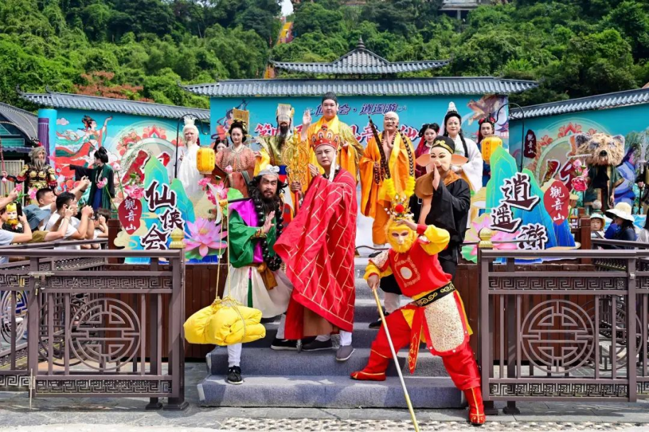 10月20日,第四届东莞观音山仙侠会重磅来袭,众多西游NPC及《黑神话·悟空》中的天命人、四妹、杨戬、小八戒等联手重现经典场面,与现场游客沉浸式游园互动、送福,引得现场市民游客热情高涨。