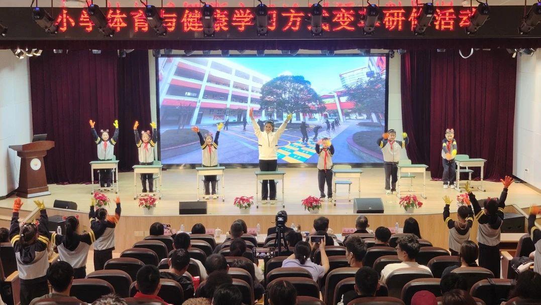 随后,成师附小三圣分校的花娃娃和老师们给参会的专家与教师们带来了一场新颖有趣的课间座位操、课间十分钟锻炼的展示。